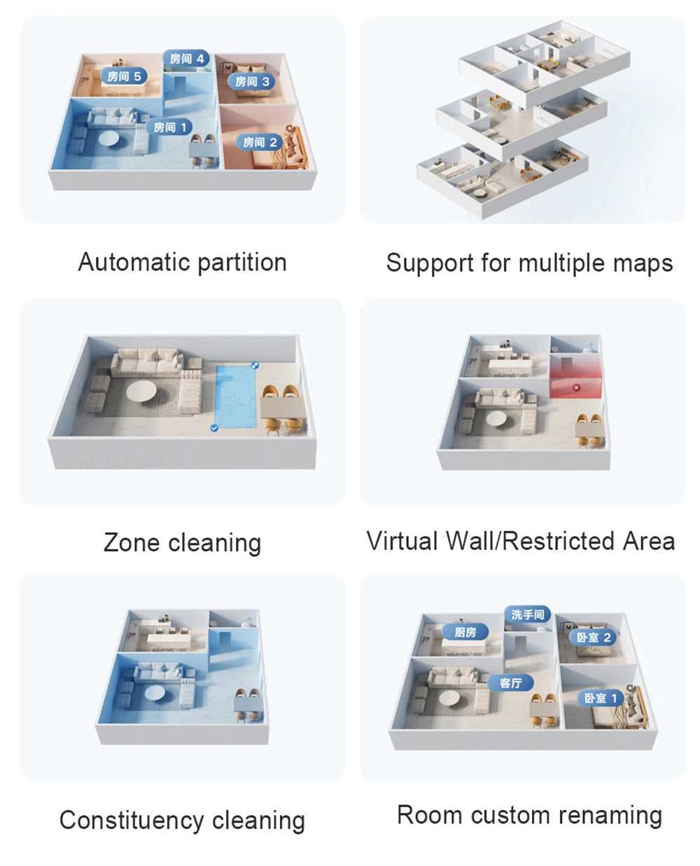 After mapping, you can create more rational cleaning plans according to your home environment. Clean the way you want.